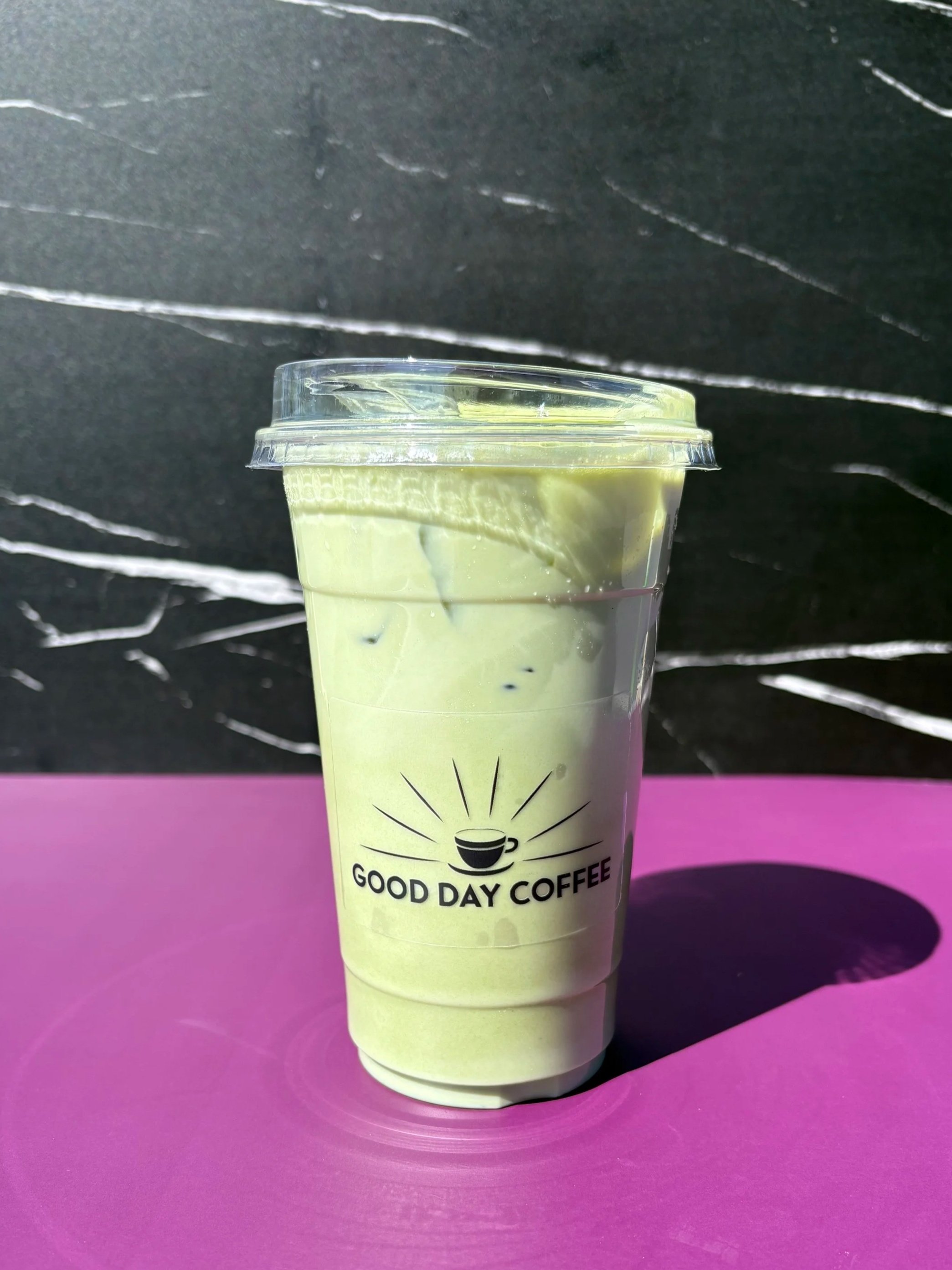 Hot or cold matcha with blackberry and vanilla syrup